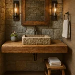 Distressed Vanity and Sconces used in a Vintage Bathroom Design