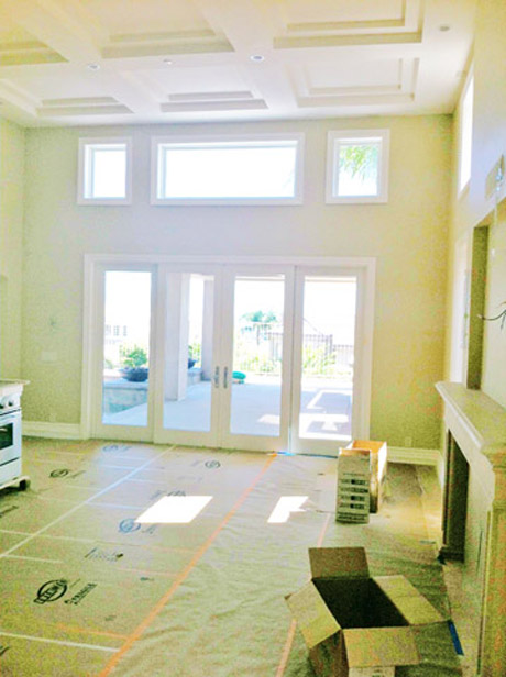 I’ve recently started a new interior design project in a beautiful gated community of Orange Hills in Orange County, California. My client has asked that I begin the design for the family room, dining nook and kitchen so that they can move in as soon as possible. I’ll continue designing the rest of this 7,000 square foot home once the main areas are designed. I wanted to share the interior design project and some before photos, conceptual design ideas and the floor plan to journal my progress from beginning to end. The family room is approximately 18′ x 29′ and the ceilings are 14′ high. Decorating a large room can be a bit challenging and I need to make sure the scale of the furniture is not over powered by the oversized space.