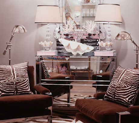 This is a bathroom by Barry Dixon. I love the neutral colors, zebra ottoman and giant clam shell in the shower.